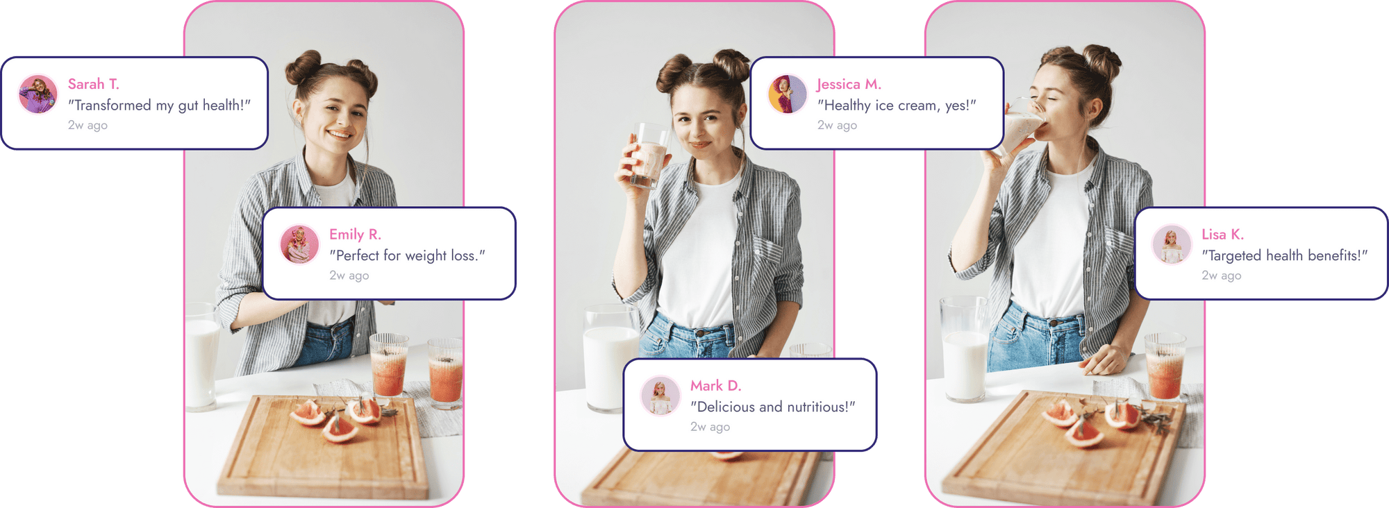 When using our Probiotics as a base, you get 100% healthy ice cream, 0% sugar, packed with probiotics for your gut health, and infused with Protein and collagen, including all your daily vitamins